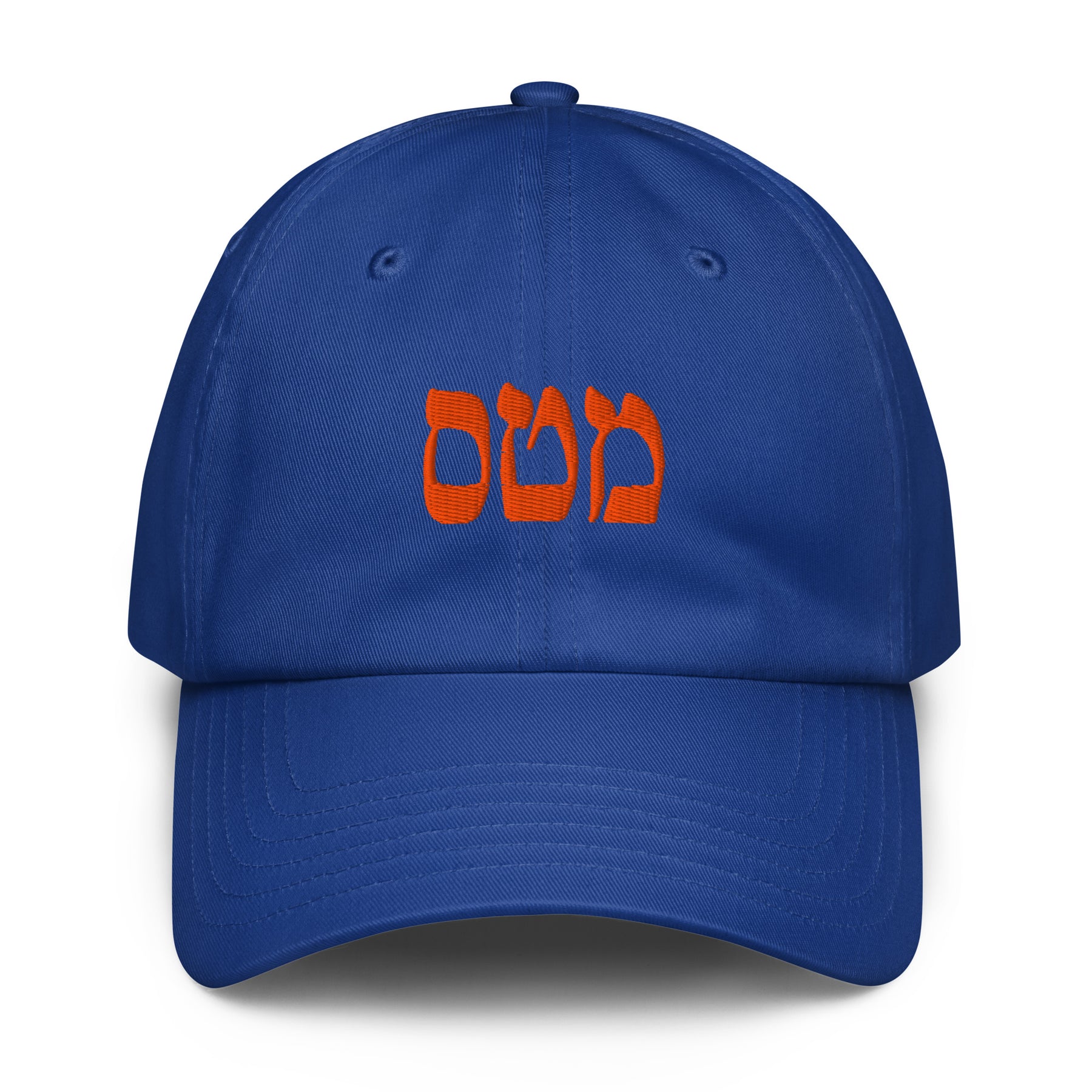 Show your Mets pride with a Hebrew twist! This royal blue dad hat features “Mets” embroidered in bold orange Hebrew letters — a perfect mix of New York spirit and Jewish style. With its relaxed fit and classic look, it’s the ideal cap for game days, bagel runs, or just adding a little chutzpah to your everyday outfit.